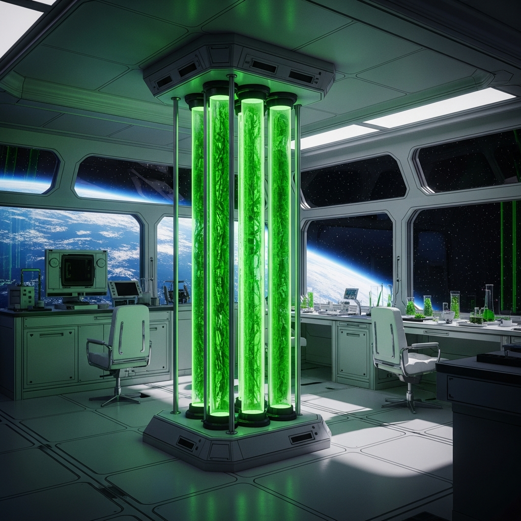 Spirulina is the ideal candidate for space settlement. It converts carbon dioxide into oxygen more efficiently than most terrestrial plants, grows rapidly in compact bioreactors, and provides a complete protein profile for astronaut nutrition.